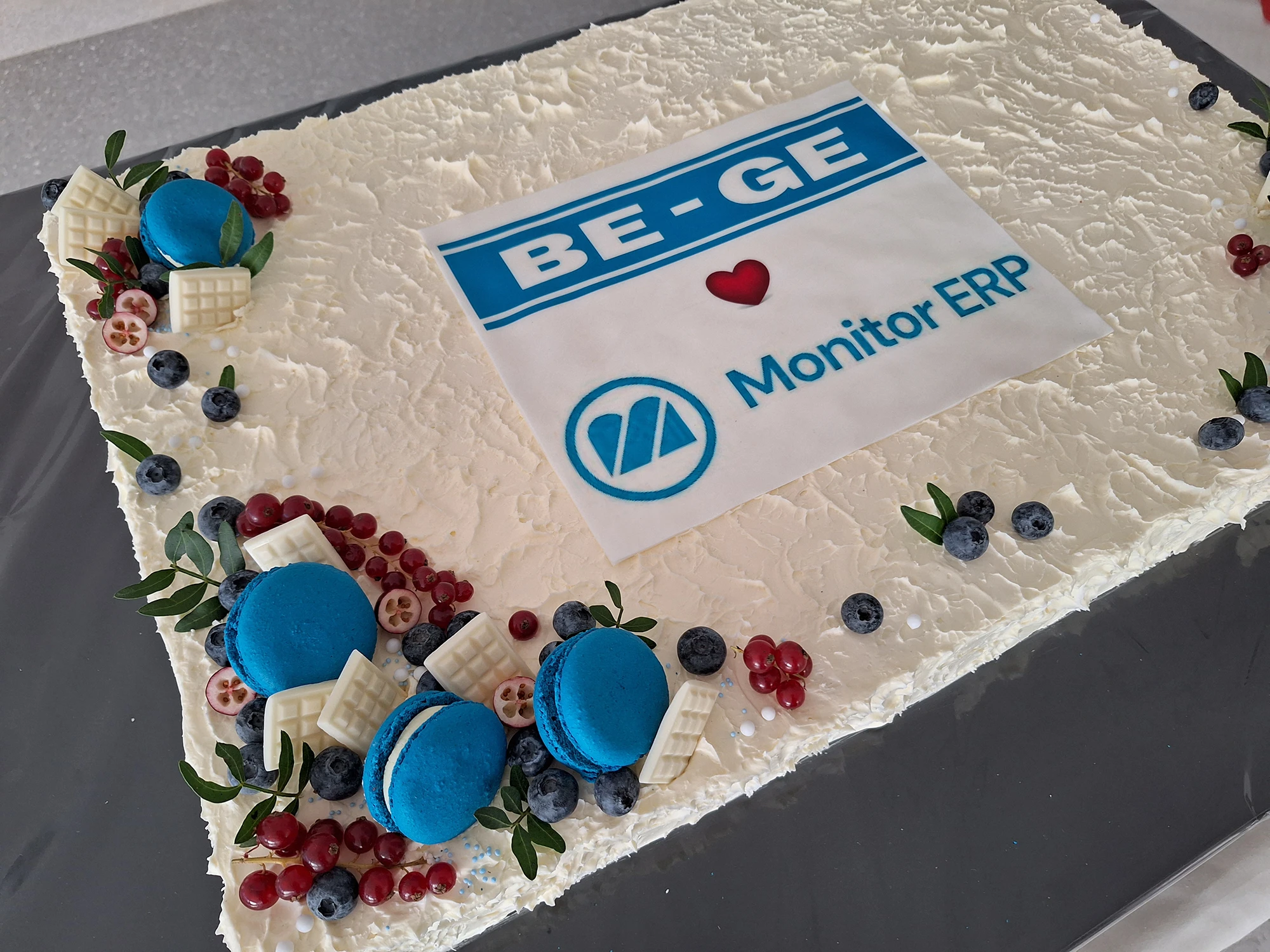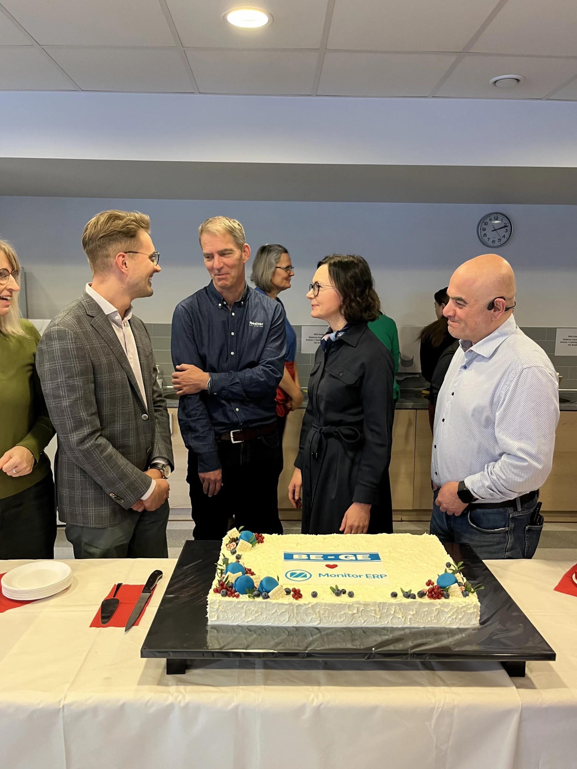 Vi uppmärksammade den framgångsrika implementeringen genom en gemensam sammankomst för alla anställda och självklart med en festlig tårta. Direktören, tillsammans med IT-chefen, gratulerade teamet, tackade alla för deras insatser och uppmuntrade alla att fortsätta utveckla arbetssätten med stöd av de nya systemen.