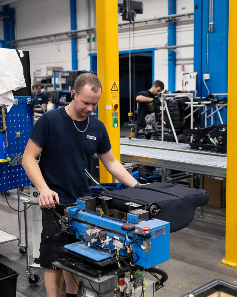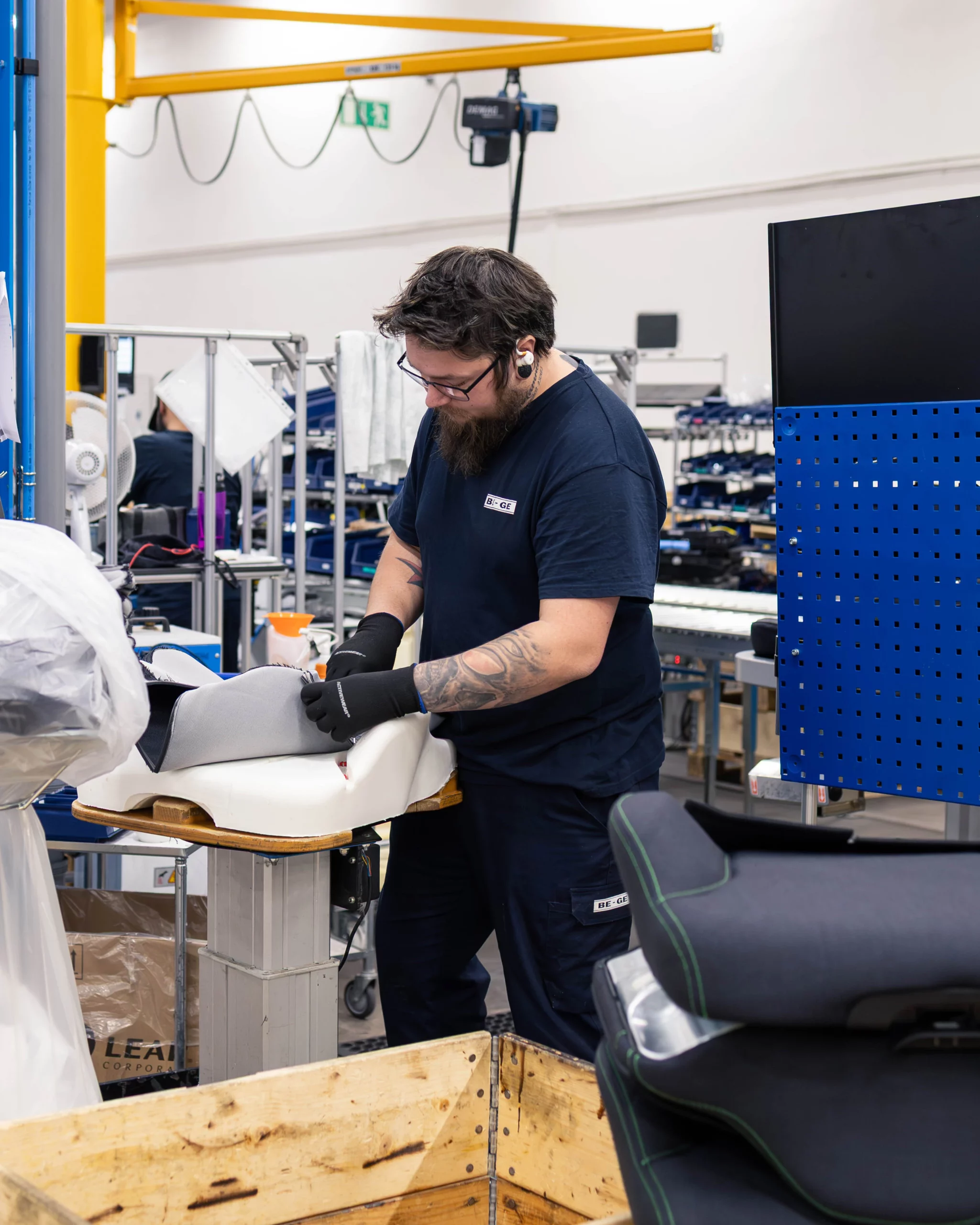 Det handlar om de små detaljerna när vi klär våra stolar. På Be-Ge Seating kläs varje stol med noggrannhet och stolthet för att leverera komfort, hållbarhet och ergonomiskt stöd. Vår klädselprocess kombinerar hantverksskicklighet med branschledande material för att säkerställa sittlösningar som uppfyller de högsta kraven på säkerhet, kvalitet och komfort oavsett om det gäller förarstolar, passagerarstolar, kontorsstolar eller andra applikationer. Med lång erfarenhet av kundanpassade sittlösningar för verkliga miljöer fokuserar vi på varje detalj.